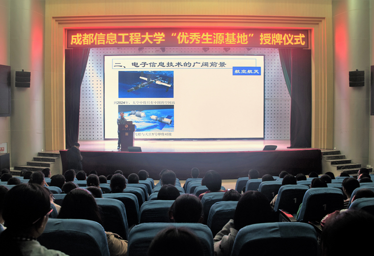 授牌仪式结束后,我校电子工程学院教授马尚昌博士为泸县二中师生作了题为《电子信息技术应用的广阔前景--以气象防灾减灾为例》的科普知识讲座。马尚昌教授在报告中简要概述了电子信息技术,重点介绍了电子信息技术在气象防灾减灾中的应用和成都信息工程大学的电子信息技术专业平台。现场师生认真聆听了讲座,大家纷纷表示受益匪浅。