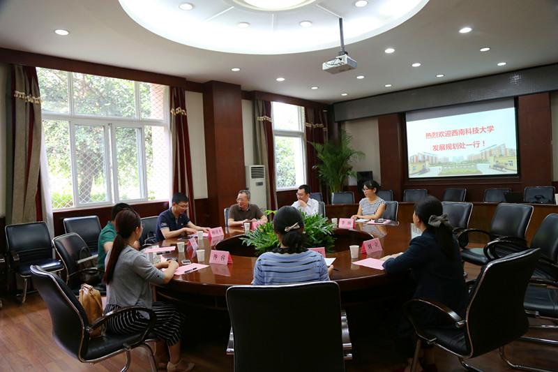 【本网讯】5月4日上午,西南科技大学发展规划处处长蒋道平一行三人来我校调研学校“十三五”发展规划编制情况。交流会在航空港校区行政楼第六会议室召开,发展规划处处长李黎、副处长李正华和相关工作人员参加了座谈。会议由李黎主持。
