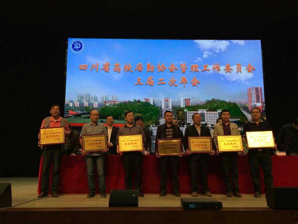 年会对协会“2014-2015年度高校后勤管理工作先进集体和先进个人“进行表彰。我校原后勤管理处处长羊裔高,后勤管理处质检科科长刘畅被评为“2014-2015年度四川省高校后勤管理工作先进个人”。