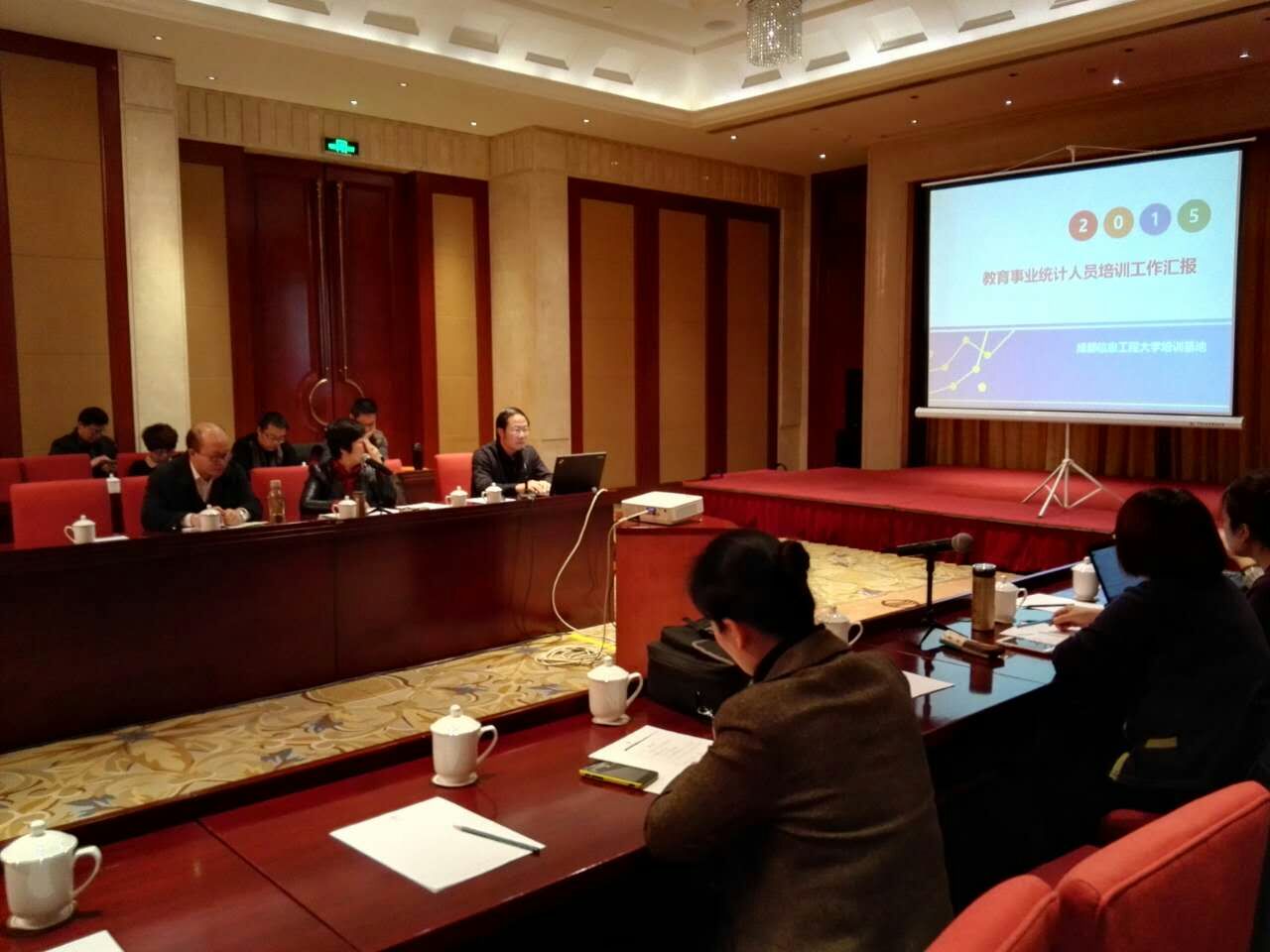 会上,山西省教育厅副厅长任月忠致欢迎词,教育部发展规划司副司长秦昌威出席并作重要讲话,教育部发展规划司统计处处长李燕丽主持会议。西安市教育局、山西省教育厅、北京市教委在大会上结合自己开展的特色工作,分别做了经验交流。各培训基地介绍了2015年培训工作情况。统计学院院长朱胜教授代表成都信息工程大学培训基地,重点介绍了2015年我校培训基地开展培训班的基本情况与培训效果、主要做法与体会及下一步的建议与打算。