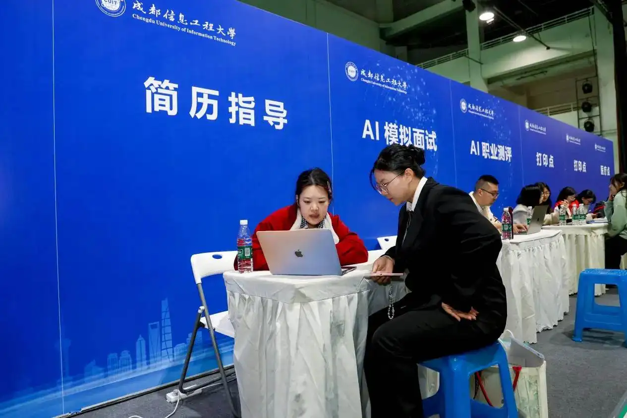 招聘会现场设置有服务咨询专区,涵盖简历指导、AI模拟面试、AI职业测评、打印服务、医疗服务等多元服务,为求职学子筑牢全方位应聘支持体系,为学生提供专业且贴合学生实际的个性化规划指导,帮助学生明确生涯目标。提供全方位、全过程、全覆盖的多元化就业服务,解决他们的后顾之忧。同时也为用人单位提供更优质的配套服务保障,有效降低了用人单位的招聘成本,提高了招聘效率,对快速选聘优秀人才发挥了积极的作用。