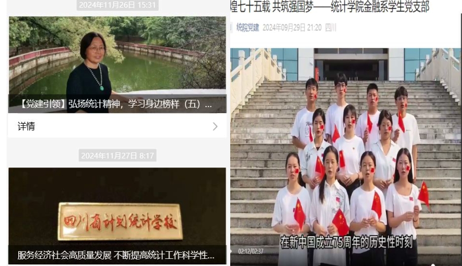 注重宣传教育是发挥思想引领的重要抓手。除了线下的学习提升之外,学院党委专门开设了“统院党建”微信公众号,以此作为学院党委进行思想政治引领的线上窗口。本号设置了“时政热点”、“党史学习”、“统计天地”、“学院党建”、“榜样力量”等专栏,将党建、业务与育人充分结合,年内共发布推文50余篇。其中,五期榜样人物引领篇目的阅读量超过1400人次。