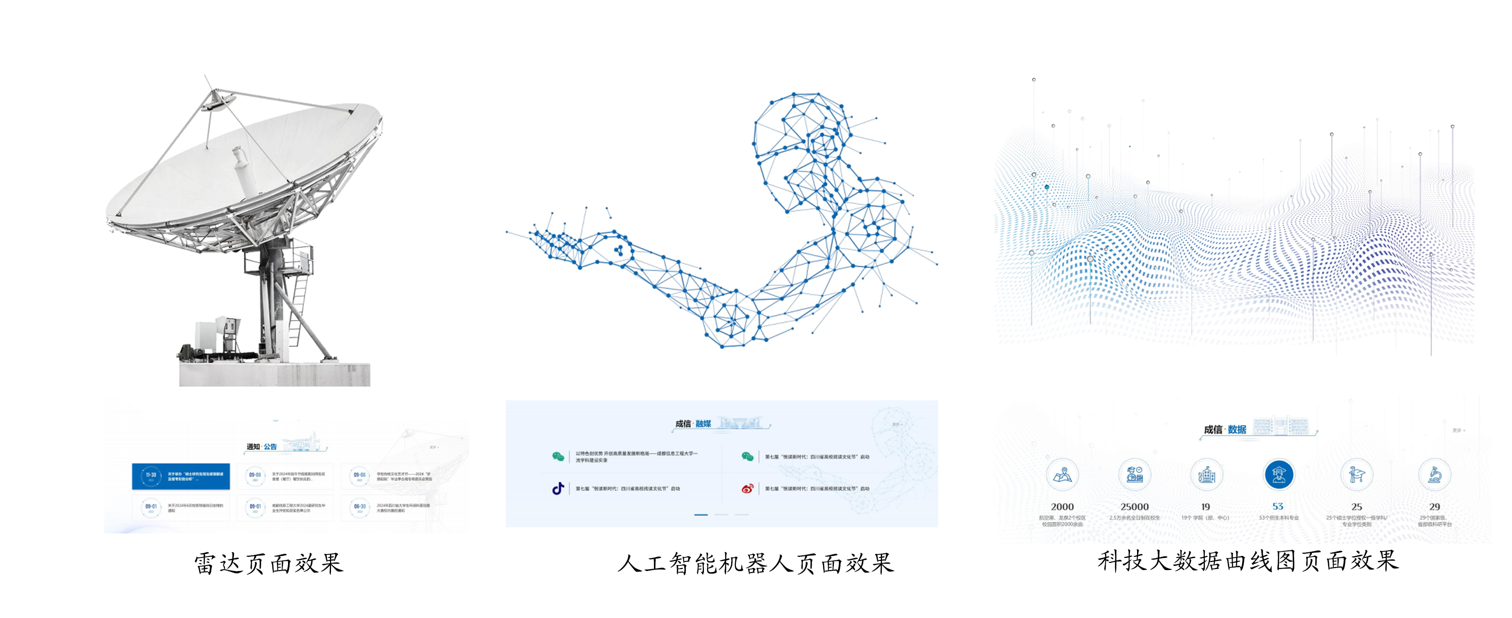 成信要闻采用大图展示学校重点工作、教学科研进展、局校合作、校地合作等工作动态,增强新闻展示视觉效果,提升浏览网页体验感。各栏目融入精致的学校标志性建筑剪影,以“成信+”的栏目名称彰显成信精神内核,展示成信要闻、学术科研、大学文化、师生校友风采、成信融媒等特色栏目。
