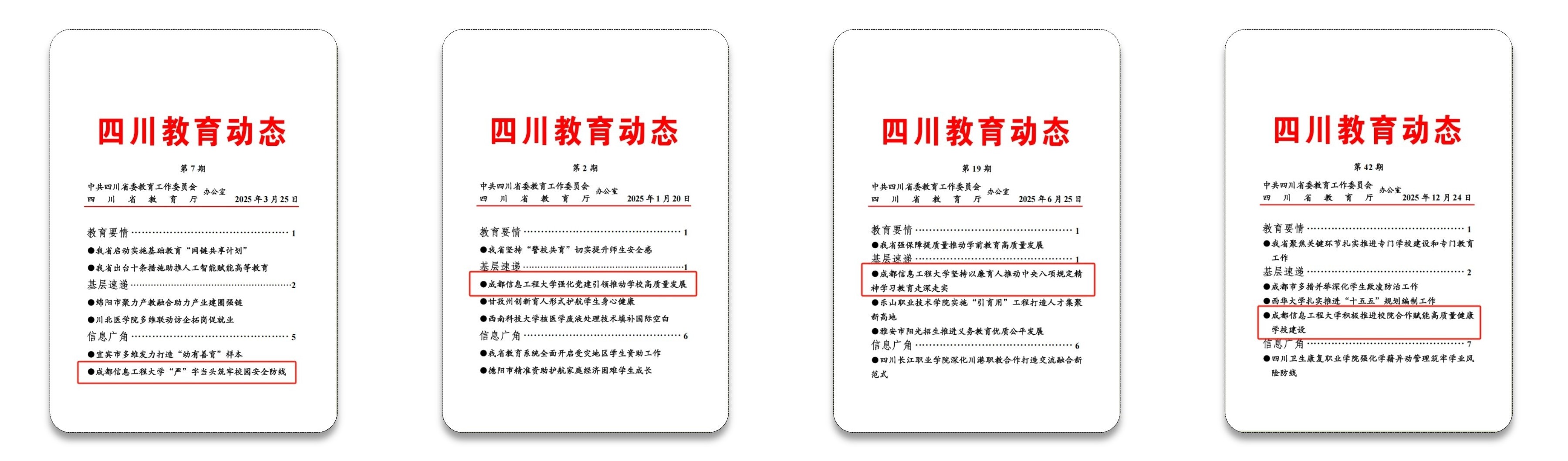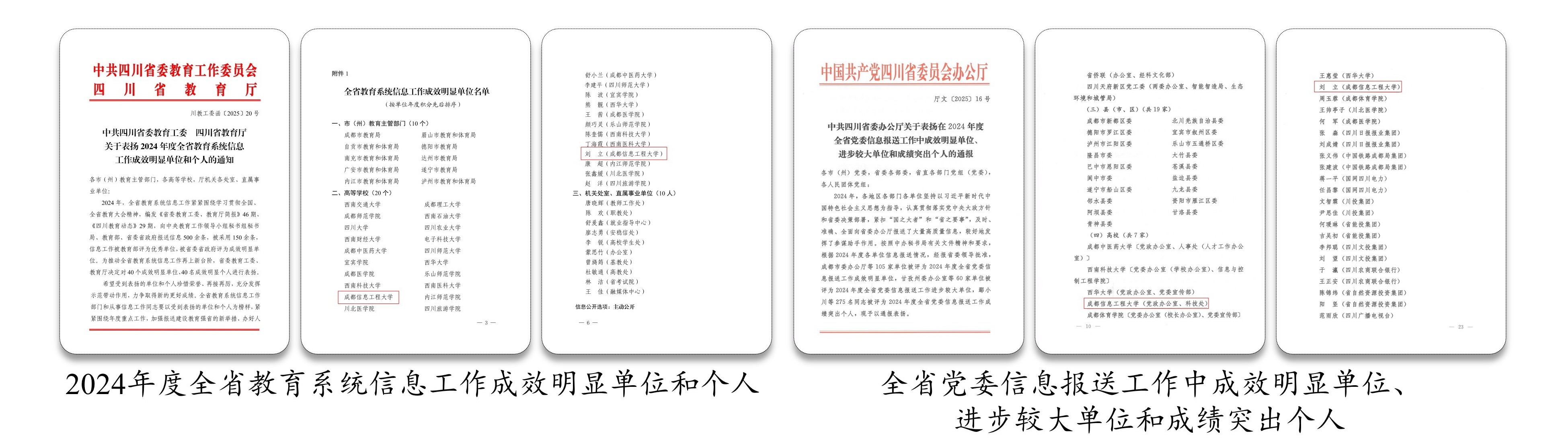 (三)着力提升信息报送工作质效。持续加强信息报送与经验提炼,全年向上级部门报送教育信息60余篇,报咨政类选题近50个,部分咨政建议被中共中央办公厅、国务院办公厅及省委办公厅信息刊物采用。学校信息报送工作在省教育厅“教育信息工作”年度绩效考核中连续三年实现高位突破。学校连续两年获评全省教育系统信息工作先进单位,部门2名同志获得先进个人。2025年,学校首次获全省党委信息报送工作进步较大单位,部门1名同志获成绩突出个人。
