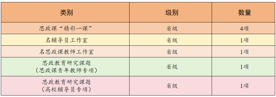 以省级“三全育人”综合改革试点建设为抓手,深度对接“十大育人”体系,通过“多维联动”机制赋能学校“思政质量提升工程”,推动思政工作与教学、科研、管理、服务等深度融合。统筹发挥思政课教师、辅导员、专业课教师、管理干部等队伍在“教室第一课堂、实践第二课堂、网络第三课堂”中的协同育人作用,选树宣传优秀教师典型,激发队伍活力,初步形成了全员、全过程、全方位育人格局。本年度,学校思政工作队伍成果丰硕,获省思政课“精彩一课”奖4项,获批省思政教育研究课题(青年教师专项、辅导员专项)2项,成功获批省级名辅导员工作室和名思政课教师工作室各1个。