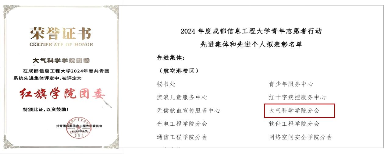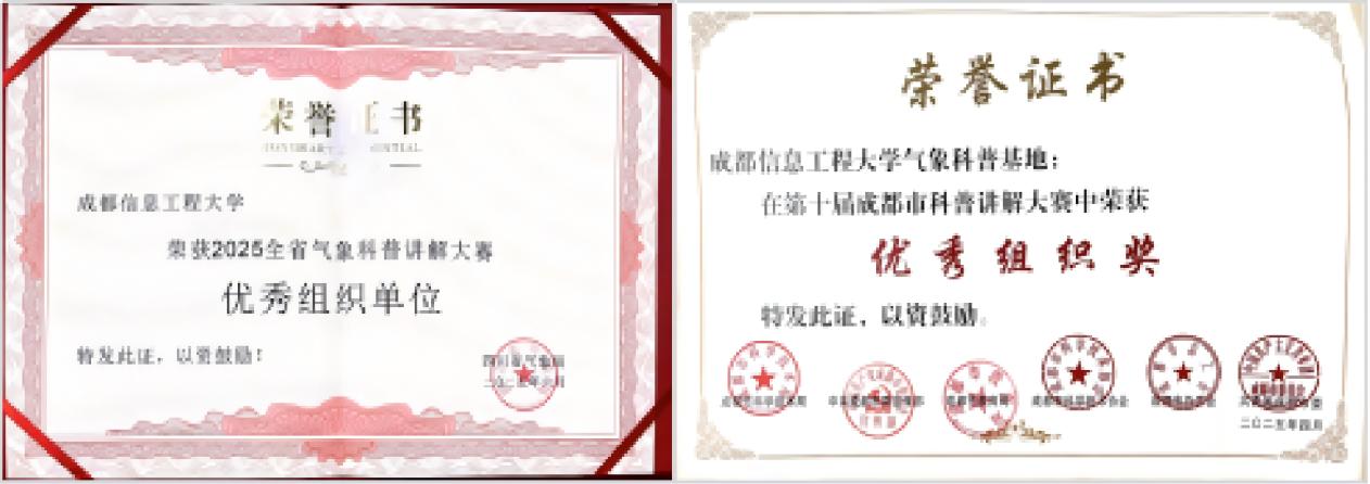 学生工作获得全面认可,学院团委被评为“红旗学院团委”,并获学校社会实践先进单位、志愿者先进集体等荣誉。师生共13人次在各级气象科普比赛中获奖,并荣获2025年全省气象科普讲解大赛优秀组织单位、第十届成都市科普讲解大赛优秀组织奖。