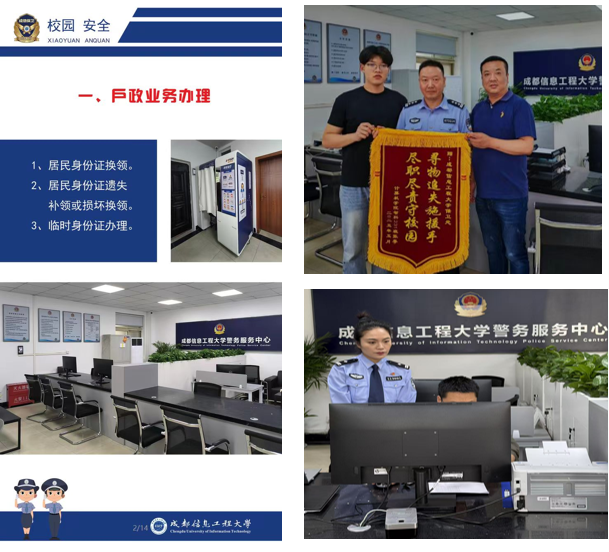 户政服务方面,警务服务中心一期建成投入使用,实现“一站式”户政服务,完成毕业生户口迁移273人,提供户籍咨询、处理各类问题330余次,出具相关证明170余份,线上线下结合,流程透明高效,真正做到了让师生少跑路。