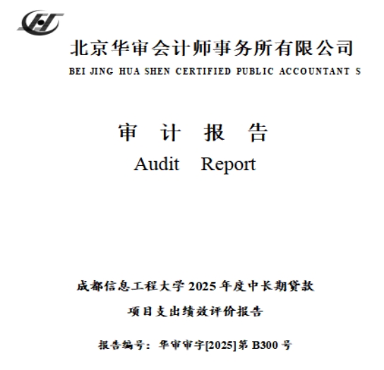 联合北京华审会计师事务所有限公司对学校第一轮共计30个中长期贷款项目进行了绩效评价。经过前期准备、单位自评、现场评价、撰写报告四个阶段的工作,目前已形成《成都信息工程大学2025年度中长期贷款项目支出绩效评价报告》,并督促相关项目负责部门完成了初步整改。
