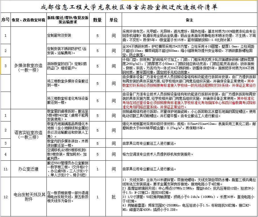 成都信息工程大学现对“龙泉校区语言实验室搬迁改造项目”进行招标,本项目采用竞争性谈判的方式进行采购。欢迎潜在供应商参与投标,要求供应商需具备如下条件及服务承诺: