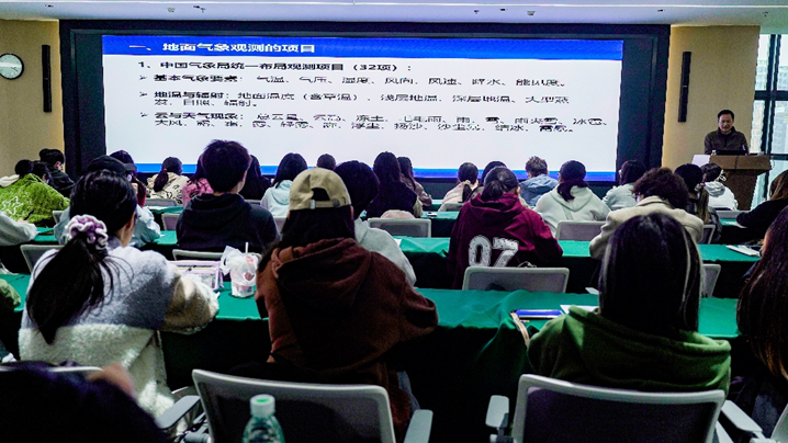 在四川研修中心,专家为同学们系统介绍了地面气象观测业务的基本架构,详细讲解了各类地面观测项目的设备原理、技术特点与发展前景。学生们认真聆听,对“看似普通却极为精密”的气象设备有了更深层次的理解,切实体会到科技在现代气象观测中的关键支撑作用。