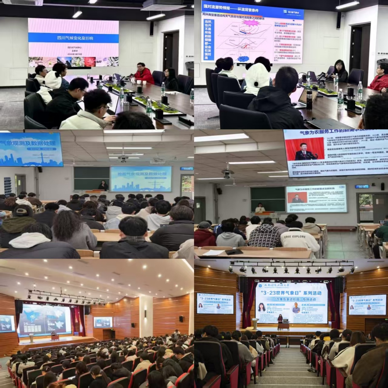 【本网讯】为迎接第66个世界气象日,近日,学校携手四川省气象局,由科技处、大气科学学院等单位共同参与举办“3·23世界气象日”系列活动——“气象专家进校园”专场活动,邀请多位气象领域高级工程师走进校园,围绕交通气象、气候研究、地面观测、强对流天气、应用气象及低空经济等前沿方向开展系列专题讲座,为师生带来兼具学术深度与实践温度的气象科普盛宴。