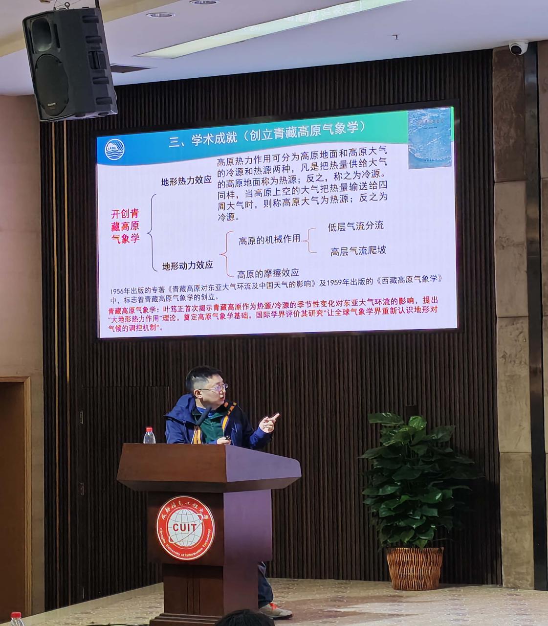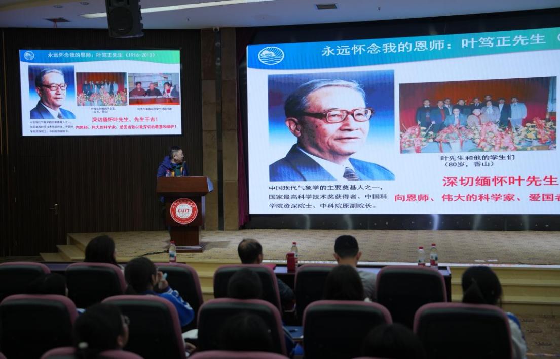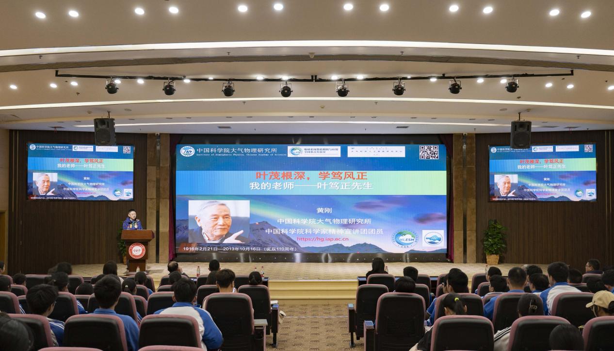 【本网讯】为深入贯彻落实习近平总书记关于弘扬科学家精神、加强学风建设的重要指示精神,贯彻国家“大中小学思想政治教育一体化”精神、激励青年学子赓续科研报国的赤子之心,3月27日下午,我校大气科学学院在国际会议厅举办“追风逐梦讲坛”第3期——“叶茂根深,学笃风正:我的老师叶笃正先生”喜迎75周年校友回家活动主题讲座。本次讲座特邀我校1990级校友、中国科学院大气物理研究所特聘核心研究员(二级)、中国科学院大学岗位教授、中国科学院科学家精神宣讲团成员黄刚担任主讲。讲座由学校大气科学学院党委书记张宇主持。大气科学学院党委副书记陈敏、四川省双流棠湖中学教务处副主任李建军、棠湖中学师生代表、学院教师及学生代表等230余人共同聆听了报告。
