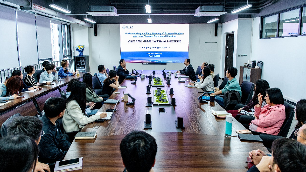【本网讯】4月10日上午,中国科学院院士黄建平应邀到我校新气象楼807会议室,作了题为《极端天气气候-传染病复合灾害的发生机理及预警》的学术报告。本次报告由大气科学学院院长华维教授主持,学院师生积极参会。