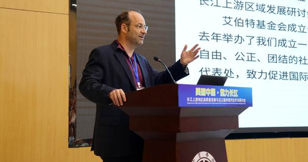 刘敦虎在开幕式上致辞。他强调要深刻领会长江上游高质量发展与沿江城市现代化的时代使命,学校将继续发挥学科交叉与平台建设优势,进一步深化与德国艾伯特基金会、宜宾学院及相关高校科研机构的交流合作,为长江上游地区绿色发展、产业升级、城乡融合与城市现代化贡献智慧和力量。