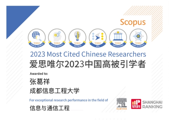 【本网讯】2024年3月27日,爱思唯尔(Elsevier)重磅发布2023“中国高被引学者”(Highly Cited Chinese Researchers)榜单。我校自动化学院张葛祥教授连续第四次入选。