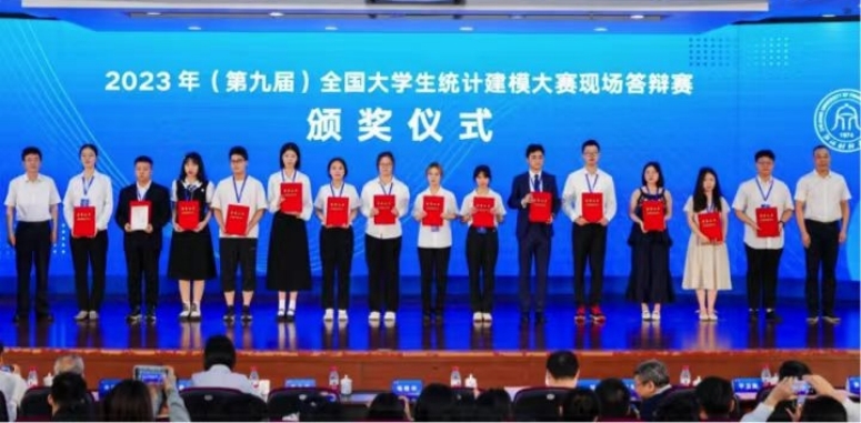 【本网讯】8月21-23日,2023年(第九届)全国大学生统计建模大赛全国总决赛在浙江财经大学圆满落幕。本次大赛由中国统计教育学会、教育部高等学校统计学类专业教学指导委员会和全国应用统计专业学位研究生教育指导委员会联合主办,浙江财经大学承办,中国政府统计研究中心协办。我校师生在大赛中喜获佳绩,斩获全国一等奖2项、三等奖5项,除此以外我校还获得省级一等奖9项、二等奖15项、三等奖14项的好成绩。获全国赛奖项队伍信息如下: