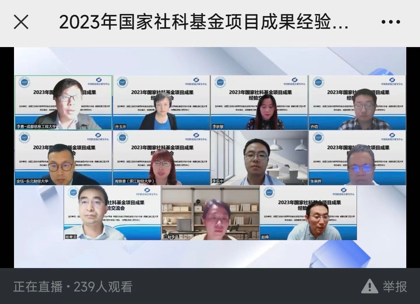 【本网讯】4月13日,2023年国家社科基金项目成果经验交流会通过腾讯会议线上召开。本次交流会由全国工业统计教学研究会企业经济统计学会、中国统计教育学会社会经济统计分会和成都信息工程大学联合主办,成都信息工程大学统计学院和中国政府统计研究中心承办。