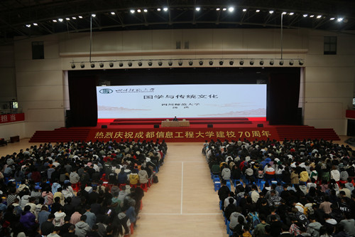 【本网讯】为贯彻落实习近平总书记系列重要讲话精神,推动中华优秀传统文化传承和发展,隆重庆祝我校70周年校庆,10月23日下午,在学校航空港校区体育馆,四川师范大学文学博士汤洪教授应邀来我校作了“国学与传统文化”专题学术报告。报告由学校党委副书记马洪江主持,1200余名师生代表参加了此次学术报告会议。