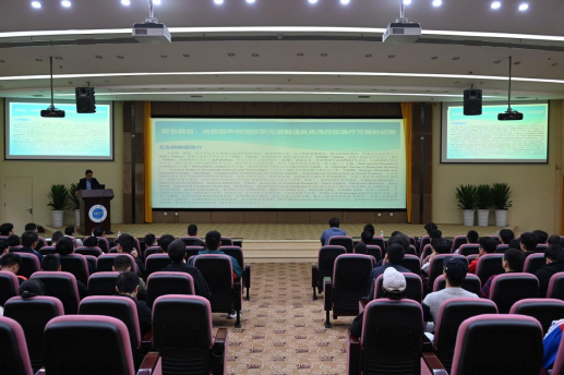 【本网讯】为隆重庆祝建校70周年,我校举办系列学术活动。10月13日下午,电子科技大学基础与前沿研究院院长、九三学社省委委员、四川省政协委员王志明教授应邀来我校作了题为《光致超声微流控泵先进制造及光流控在医疗方面的应用》的学术报告。本次报告由光电工程学院副院长李乐中教授主持,学校部分教师和百余名研究生、本科生到场聆听。