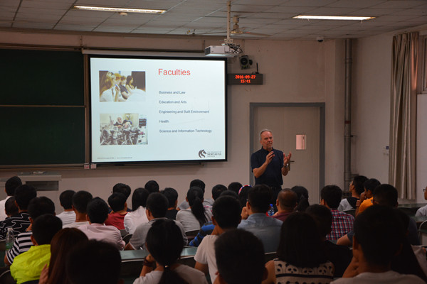 在第一场讲座中,Edward Szczerbicki首先对纽卡斯尔大学进行了简要介绍,之后对人工智能以及知识工程做了讲解。他特别阐述了知识工程对目前人工智能的重要性,并与到场师生分享了其所带领的研究组的主要工作。