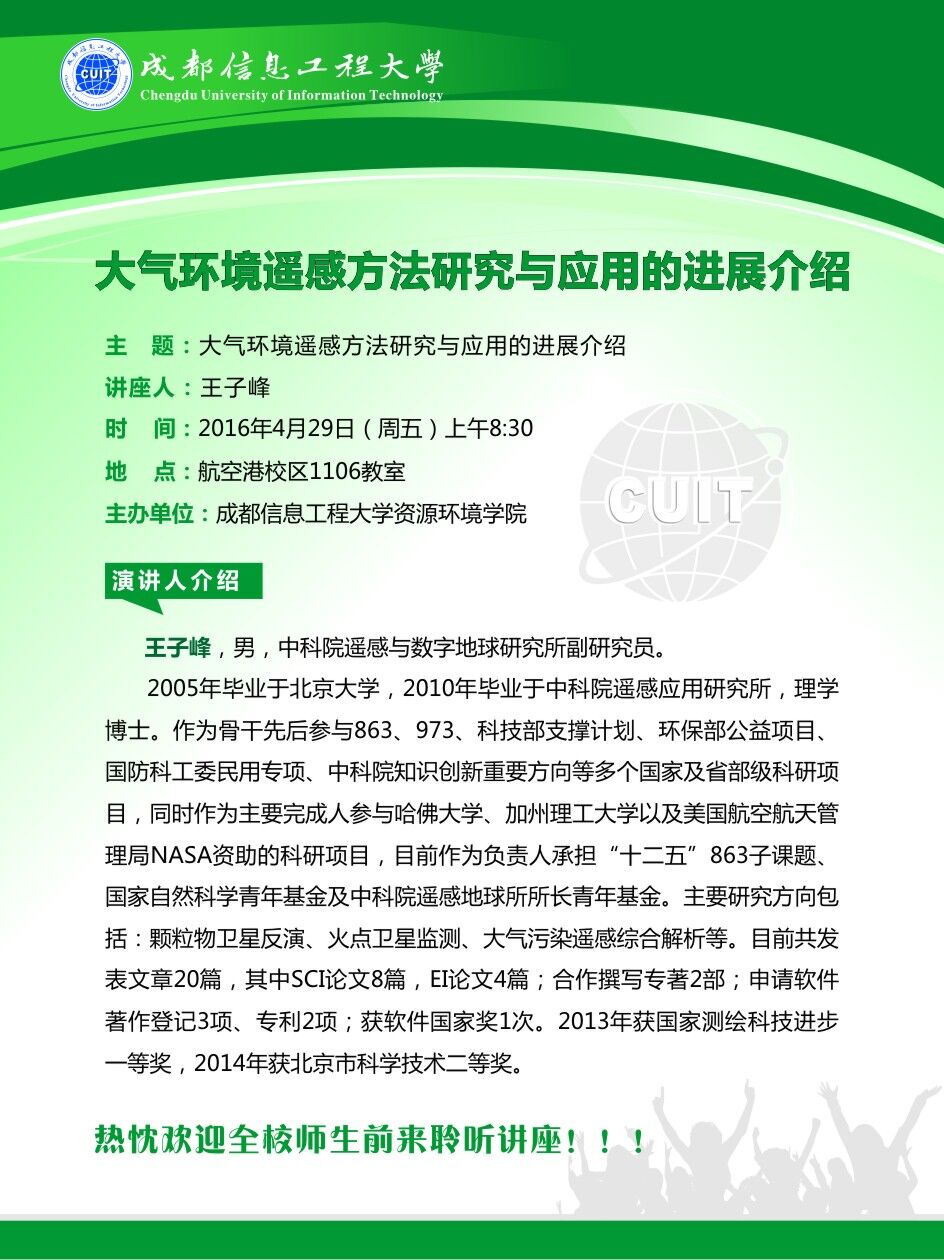 来源:资源环境学院 作者:张菊日期:2016-04-28 审核:新闻中心 点击:
