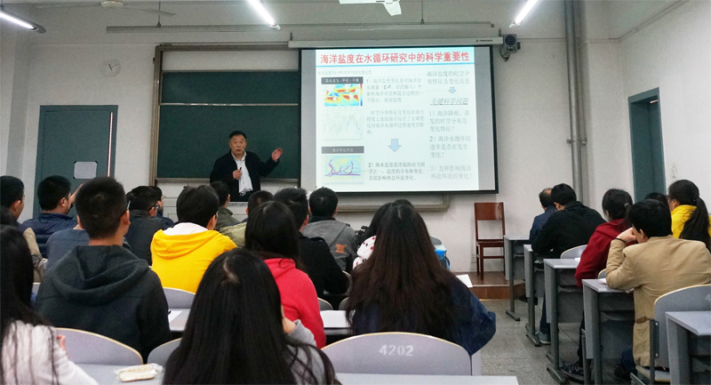【本网讯】 3月31日上午,国家特聘专家、中科院遥感与数字地球研究所、遥感科学国家重点实验室主任施建成研究员在航空港校区作了题为“全球水循环观测卫星介绍”的学术讲座。科技处、资源环境学院相关领导及师生参加了讲座。