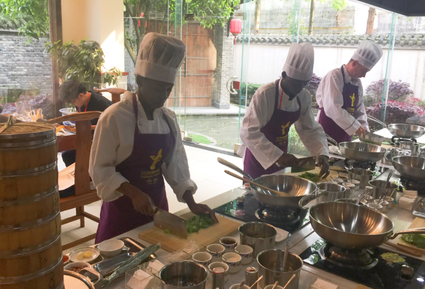 留学生学习制作川菜