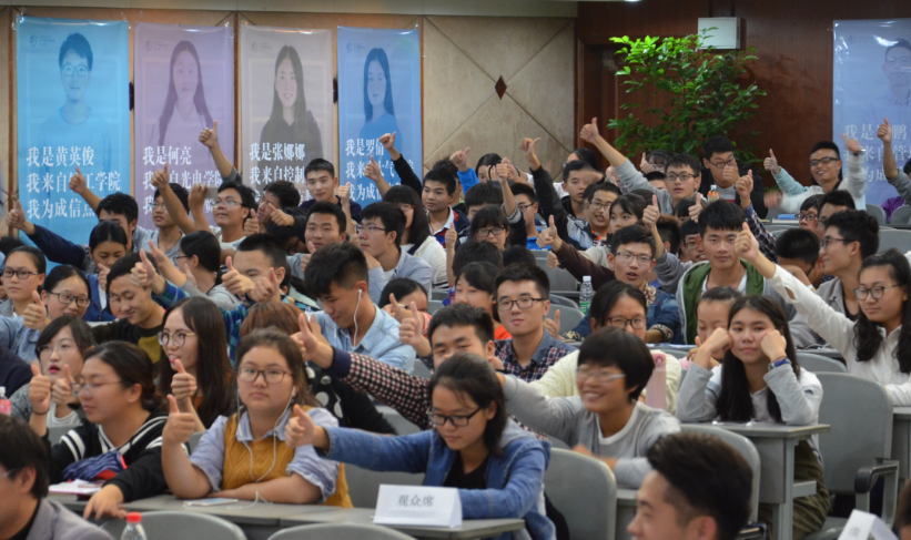 活动现场气氛热烈,观众纷纷通过微信上墙和弹幕的方式为选手加油,为成信点赞!