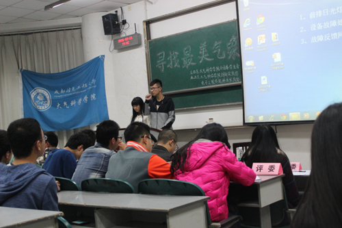 【本网讯】3月21日,于成都信息工程大学4213教室进行了“寻找最美气象”----气象科普作品评选大赛。此次比赛由大气科学学院主办,大气科学学院创新实践部与电子工程学院科技实践部共同承办。出席本次大赛的评委有电子工程学院学生会主席团、大气科学学院学生会主席团等。
