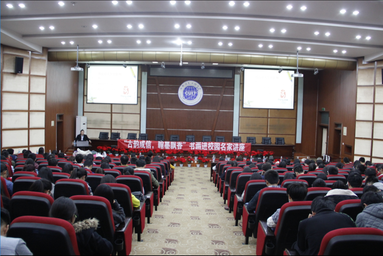 【本网讯】11月25日,第七届大学生文化艺术节“古韵成信,翰墨飘香”传统书画进校园活动在成都信息工程大学龙泉校区举行。本次活动由校团委主办,物流学院分团委、学生书法协会联合承办。活动分为书画展览、现场笔会交流、名家讲座三个部分。