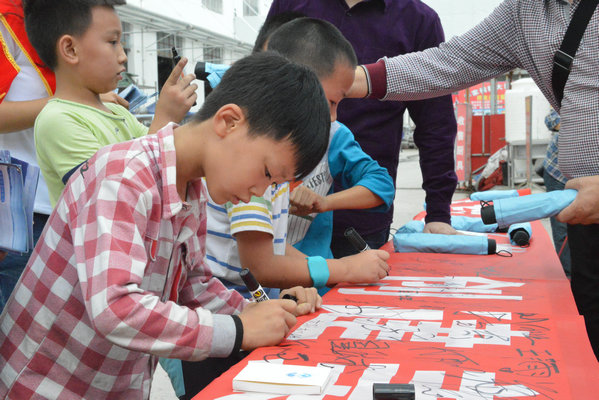 市民在横幅上签名