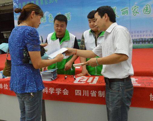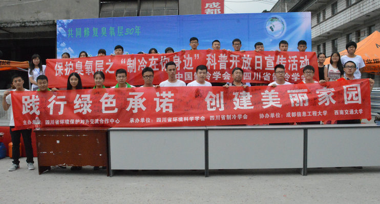 【本网讯】9月19日下午,由四川省环境保护厅主办,四川省环境保护厅对外合作中心、四川省环境科学学会、四川制冷学会、西南交通大学及成都信息工程大学承办的“共同修复臭氧层30年——践行绿色活动,创建美丽家园”为主题的9.16国际保护臭氧层日宣传活动在西南大型新旧货批发市场李家祠分场举行。