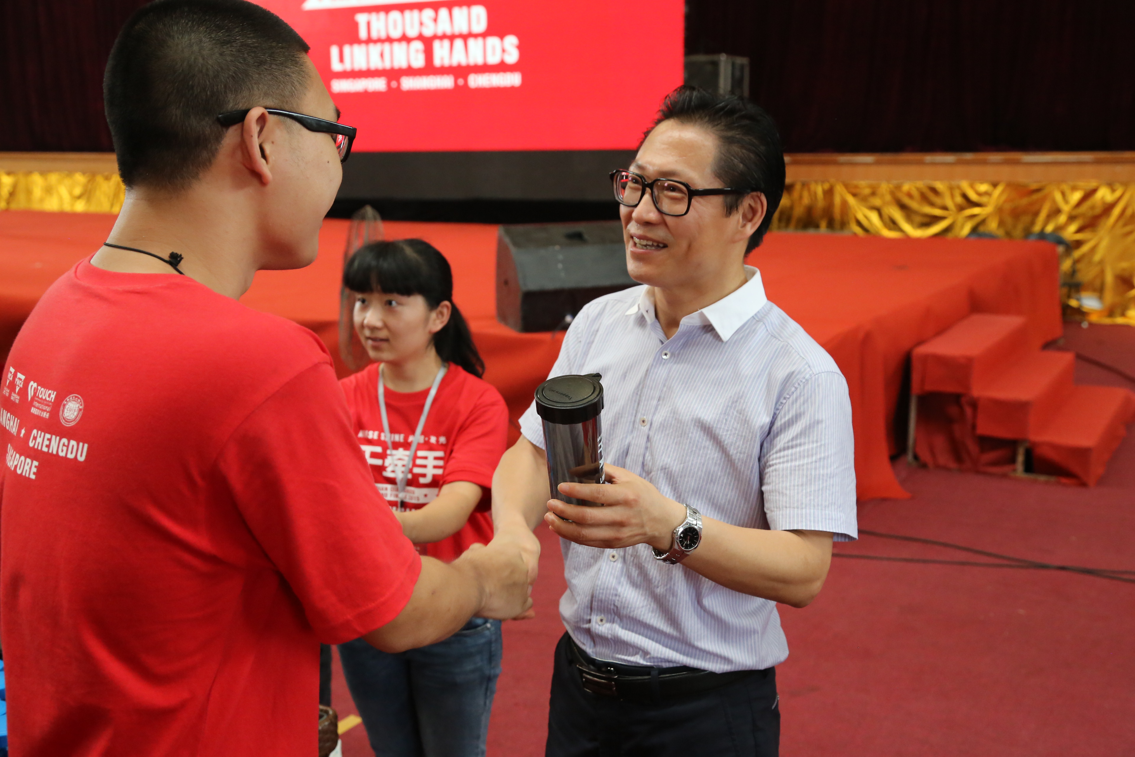 于世祥代表学校致辞,他指出,“千牵手”夏令营活动作为一项社会服务和义工领袖培育计划,为中新双方志愿者搭建了一个激发服务意识,树立服务理念,掌握服务技巧的良好学习交流平台。不仅是增强了我校学生的责任意识、奉献意识和团队协作意识,培养了他们的个人领导力,锻炼了他们的人际交往能力,更是让同学们更加深刻地体会到“奉献、友爱、互助、进步”的志愿服务精神的深刻内涵,而这种精神,必将激励更多的同学们在志愿服务的过程中不断去创造、开拓、进取。对于活动圆满完成各项预定服务内容,实现成长自我,服务社会的目标,于世祥表示热烈祝贺。于世祥最后衷心祝愿成都信息工程大学、触爱社会服务,以及中新两国友谊地久天长,希望双方进一步加强交流,寻求更加广泛的合作。