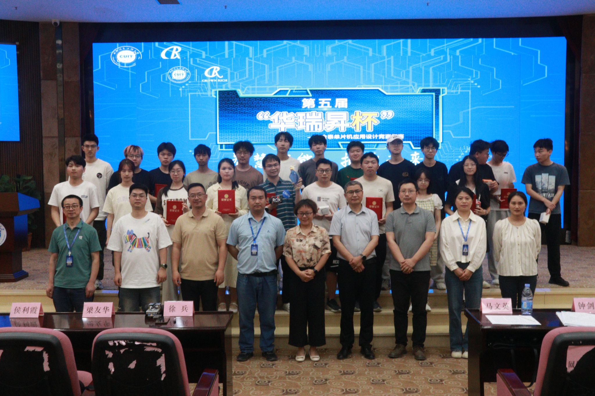 4月20日下午,竞赛颁奖典礼在学校航空港校区国际会议厅举行。通信工程学院(微电子学院)党委书记马文英、华瑞昇电子(深圳)有限公司成都分公司总经理徐兵、通信工程学院(微电子学院)教师钟剑丹、华瑞昇电子(深圳)有限公司成都分公司高级工程师梁友华、通信工程学院(微电子学院)大学生创新实验室主任谭毅、华瑞昇电子(深圳)有限公司成都分公司商务部主管侯利霞以及参赛选手和关注大赛的师生等参加了本次活动。