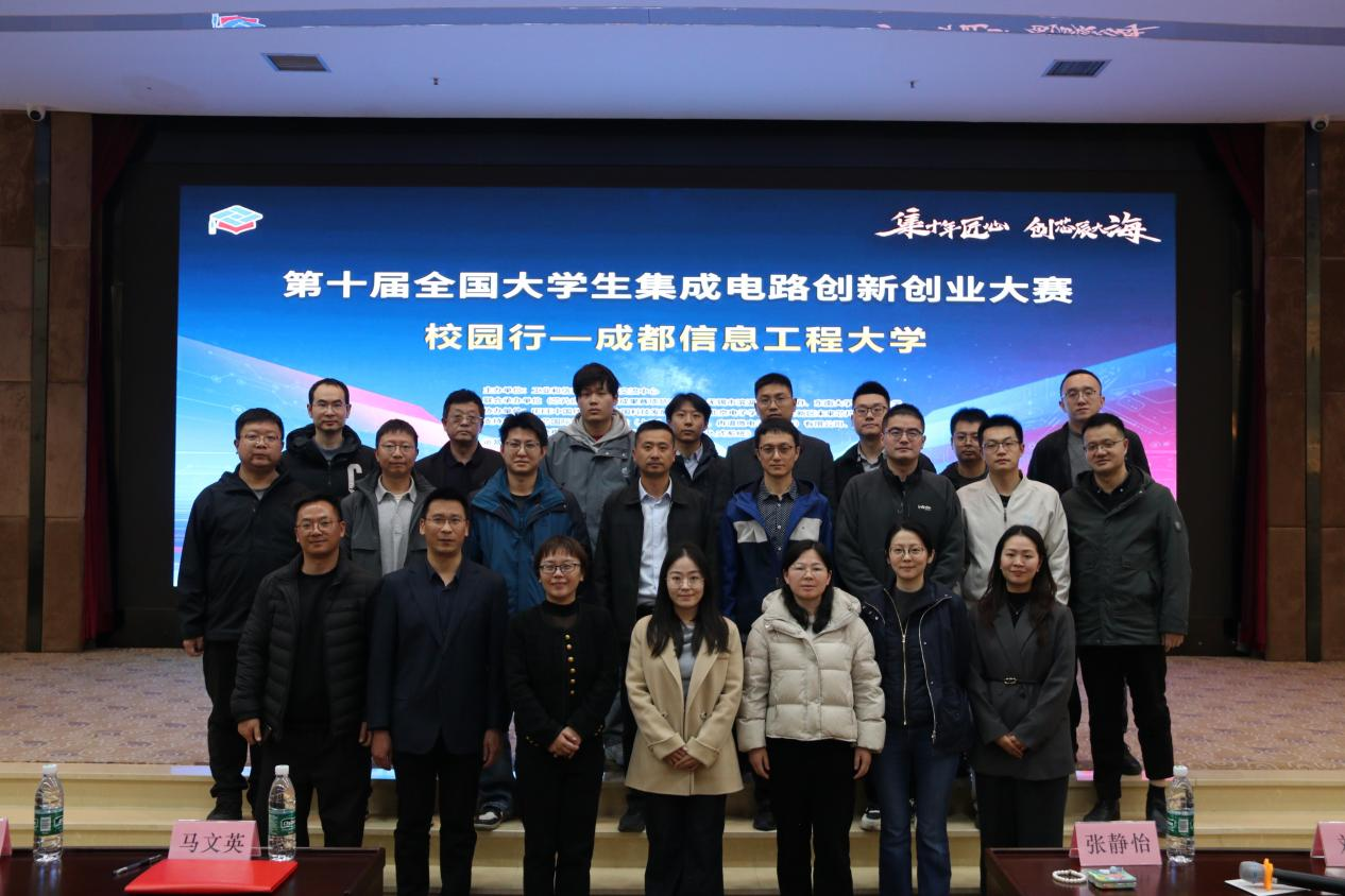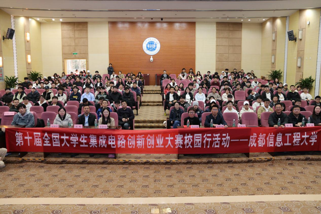 【本网讯】3月19日,由工业和信息化部人才交流中心主办,我校教务处、通信工程学院(微电子学院)、电子工程学院、自动化学院、光电工程学院联合承办,北京智芯国信科技有限公司运营的第十届全国大学生集成电路创新创业大赛校园行--成都信息工程大学站赛事宣传活动在我校举办。工业和信息化部人才交流中心教育培训处代表、集创赛组委会副秘书长张静怡、成都信息工程大学教务处副处长李代伟、通信工程学院(微电子学院)院长马文英,竞赛指导教师、企业代表和相关专业学生参加了此次活动。