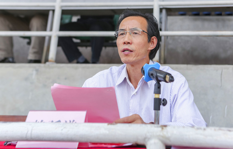 赖廷谦代表学校全体师生员工向本次担任军训任务的领导和全体教官表示崇高的敬意,向投身今年军训工作的各位老师表示衷心的感谢,向刻苦训练、顽强拼搏的同学们表示热烈的祝贺。