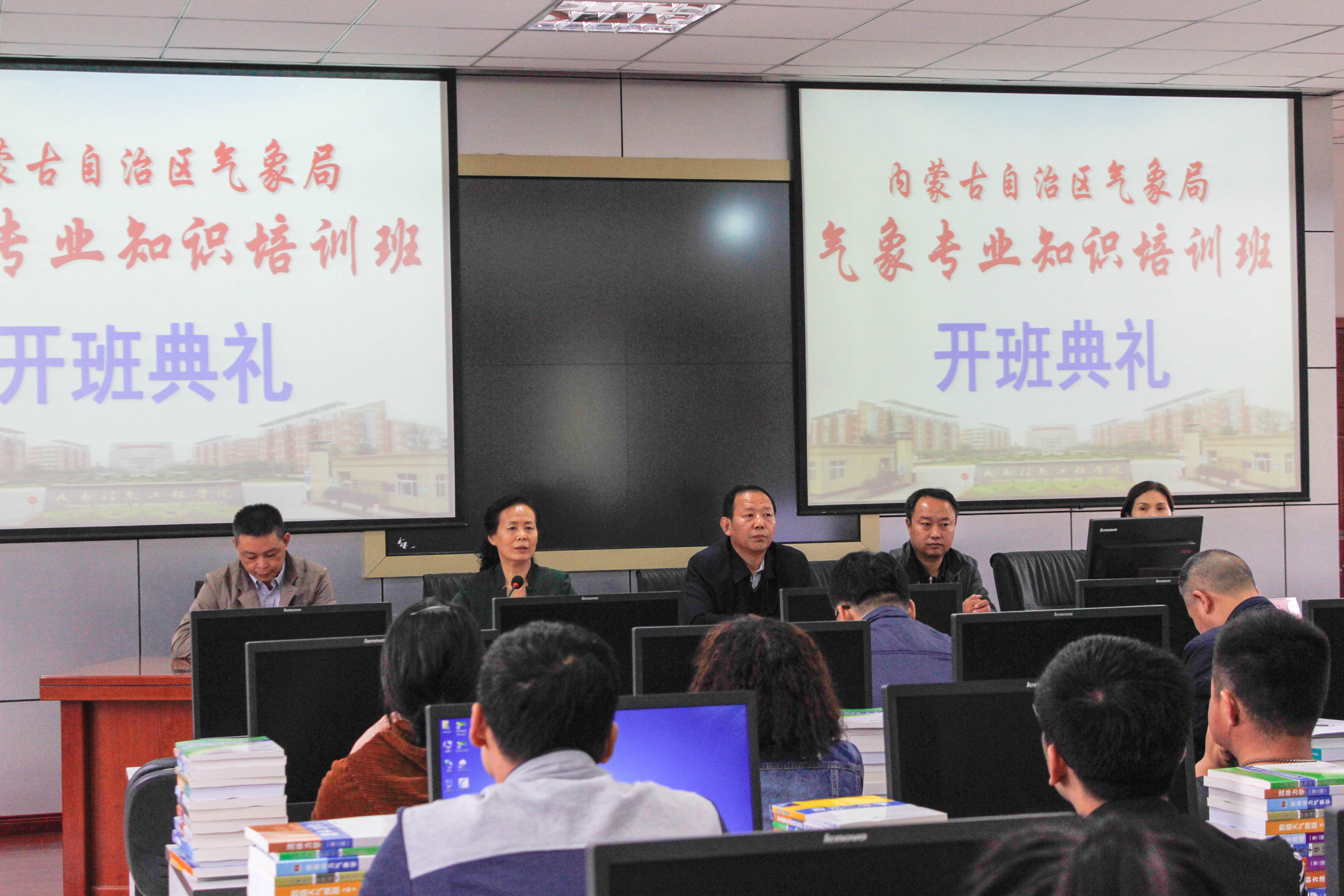 【本网讯】10月10日上午,内蒙古自治区气象局气象专业知识培训班开班典礼在成都信息工程大学气象楼实习台101教室举行。参加典礼的有内蒙古自治区气象局副局长乌兰巴特尔,成都信息工程大学党委副书记敬枫蓉,内蒙古自治区气象局人事处处长刘正会,大气科学学院院长范广洲,大气科学学院党总支书记张小红以及培训班教学、管理人员和全体参训学员。开班典礼由张小红主持。