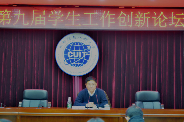 敬枫蓉宣读了《成都信息工程大学关于表彰第九届学生工作创新论坛优秀论文的决定》和《关于公布成都信息工程大学第五届辅导员职业能力大赛评选结果的通知》。大会对童强撰写的《新时期大学生心理危机预防与干预研究》等11篇获奖论文和第五届辅导员职业能力大赛获奖老师给予了表彰,鼓励各位老师再接再厉,再创佳绩。