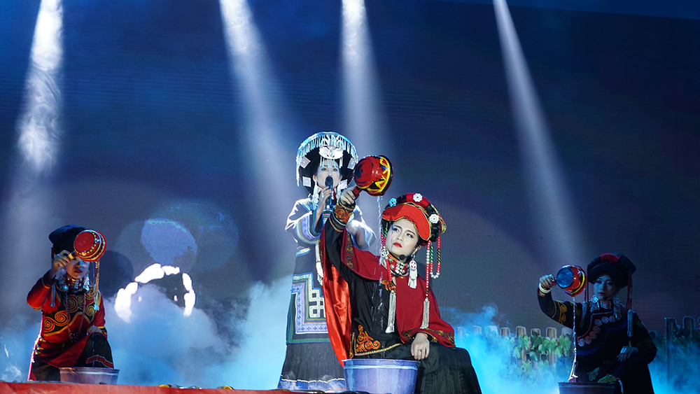 【本网讯】3月20日晚,中国民歌彝族之乡·雷波彝族民歌“云朵上的歌谣”巡演走进成都信息工程大学,在龙泉校区为我校师生呈现了一场精彩绝伦的民族文化视听盛宴。四川省文化厅、雷波县有关领导,学校部分职能部门和学院负责人,2000余名师生一起观看了演出。