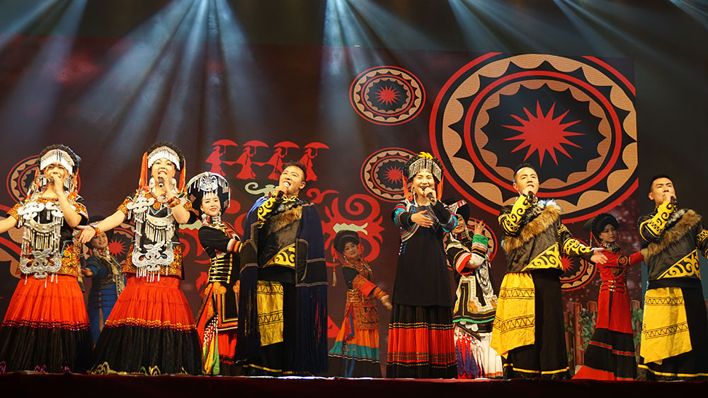 演出在极具彝族特色的合唱《祈福》中拉开序幕,精美独特的民族服饰,热情似火的表演瞬间点燃全场。气宇轩昂的彝族儿郎用雄浑的歌喉演唱了《吉祥年》,用动听的歌声表达彝族人质朴的信仰与衷心的祝愿。《格格拉》通过罕见的巴乌、月琴、芦笙等民俗器乐交相辉映,展现了彝族人民多姿多彩的文化生活。男声合唱《木库木勒》用悠扬的歌声将观众带到了那个古老而神秘的民族界地,谱颂了彝族人民热爱生命的情真意切。男声独唱《阿果》饱含深情,意境深远,慷慨的歌声描绘了清新脱俗的凉山风情,让在场观众无限向往。《尼雨尼杰》融入彝族婚俗文化,用歌声描述彝族姑娘出嫁前夜的画面。《惹达》激扬的音乐、豪放的嗓音,尽显男儿本色。 一曲《泽》刚柔并济,展现彝族人民对自然的探索和思考。“首届中国农歌会西部歌王全国总决赛季军”——老彝腔组合用低沉浑厚的嗓音,为观众带来一幅月色朦胧的美景。“民歌争霸-2013中国国际民歌大会”全球总决赛冠军——表哥表妹组合演绎的彝族原生态民歌《阿嫫古》天然纯朴,歌声嘹亮,宛转如在山谷中回荡。《嘎尔莫波这杯酒》 热情好客的彝族人民为现场嘉宾准备了美酒,送上最真诚的祝福。《五彩梦想》传递出未来生活铮铮向荣的美好希冀。《送福》用极具张力、气势磅礴的表演,礼赞生命,送去祝福。晚会在大合唱《我用母语歌唱》及《等你太久了》中圆满落幕。