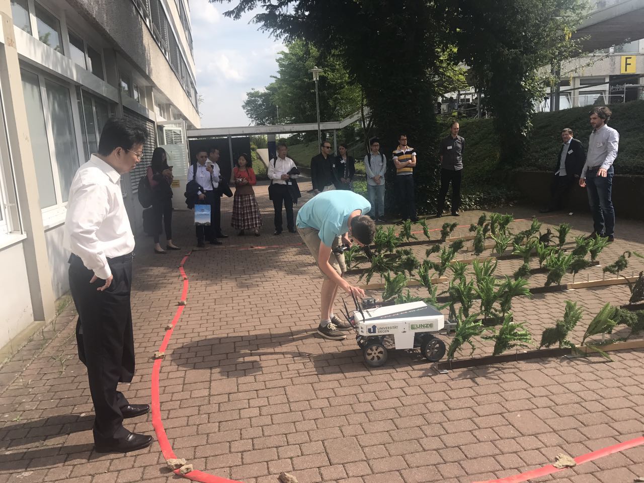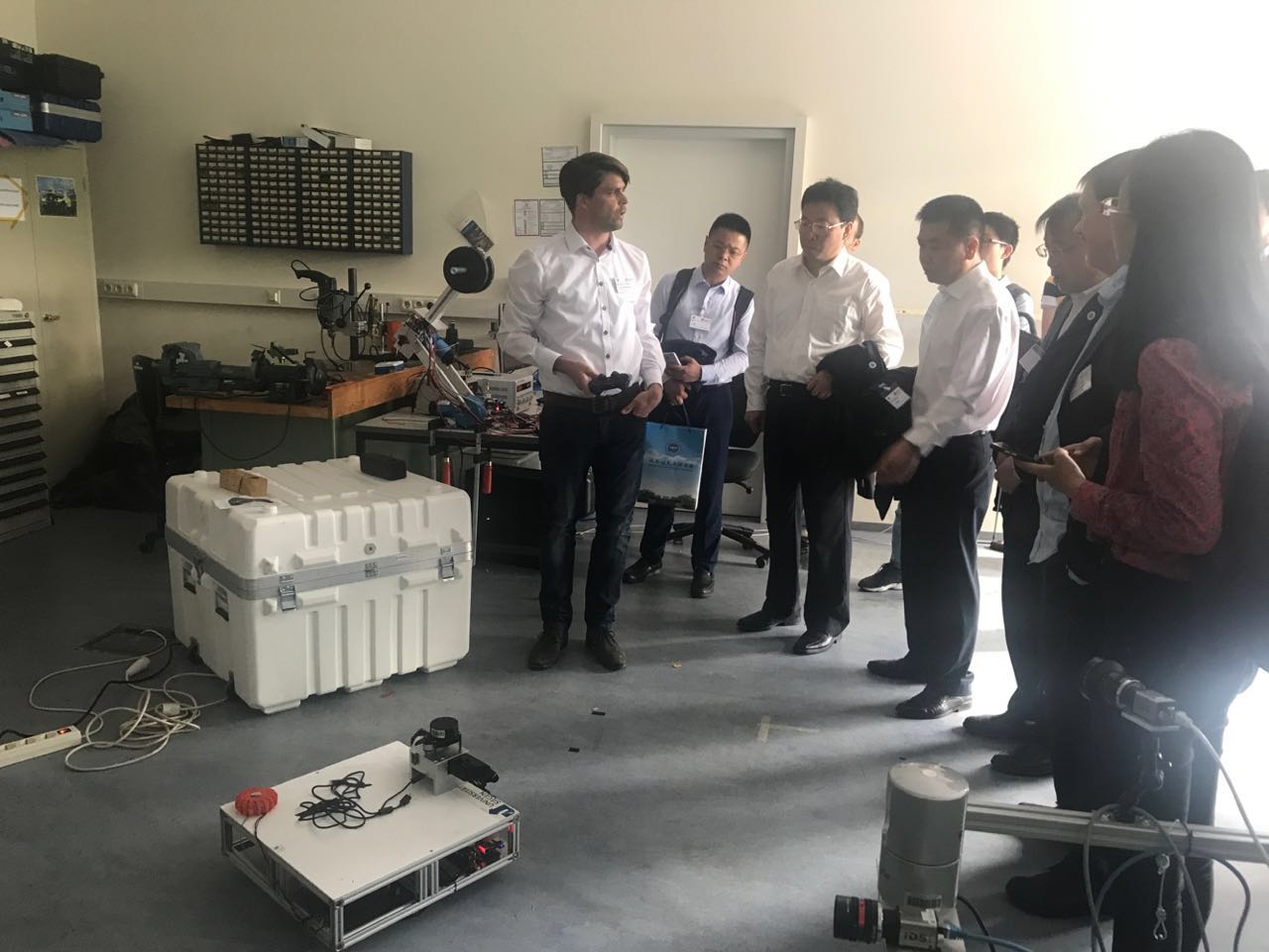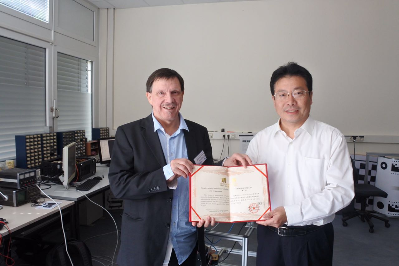 代表团在锡根大学科学与工程学院与实时学习系统Klaus-Dieter Kunhnert教授及其科研团队进行交流。周激流代表学校向Kunert教授正式颁发“成都信息工程大学机器人与智能系统国际联合研究院院长”聘书,并向Kunert教授表示祝贺。代表团参观了锡根大学机器人实验室和创新创业基地,了解了工程专业学生自主学习和研究的情况。