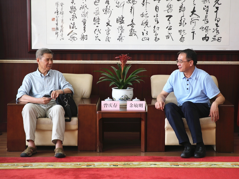 余敏明代表学校对曾庆存一行的到访表示热烈欢迎,并向曾庆存一行简要介绍了学校发展近况、科学研究、人才队伍和博士点建设等情况。