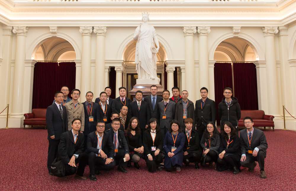 我校代表受维多利亚州议员Michael Gidley先生的邀请,与莫纳什市市议员MT Pang Tsoi 先生一行参观了维多利亚州议会大厦,议会大厦的参议院会议厅、众议院会议厅、图书馆等,对维多利亚州议会的发展历史及议会机制进行了深入了解。