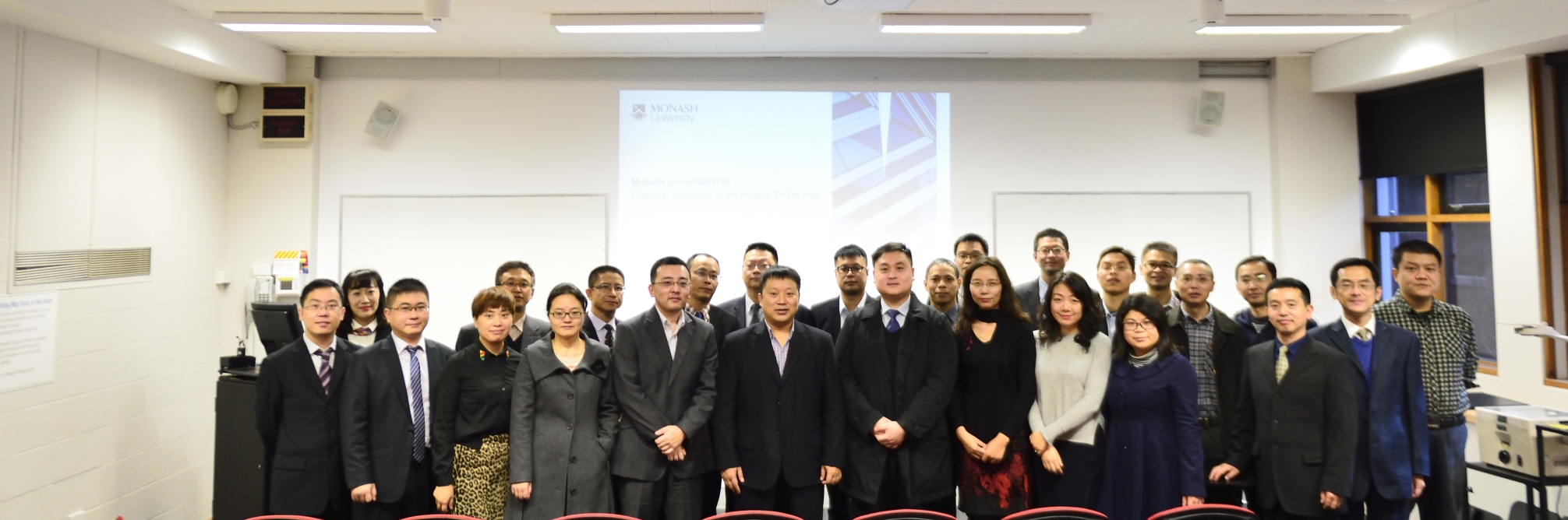 【本网讯】由国家外专局审批的成都信息工程大学“‘双一流’学科建设背景下的气象信息类专业建设培训团”于7月21日至8月11日在澳大利亚墨尔本展开培训,我校选派24名专业教师分别在莫纳什大学(Monash University)及拉筹伯大学(La Trobe University)开展为期21天的培训课程,培训期间共参加23场学术培训课程,培训内容涉及气象遥感技术、数据科学、机器学习、文本挖掘、生物信息技术、网络空间安全以及通讯技术等方面;进行7次课外参观,包括莫纳什大学“沉浸式可视化平台”(Immersion Visualiation CAVE)、墨尔本计算机研究协会(Austrilian Computer Association)、墨尔本高科创业孵化中心(York Butter Factory)、澳洲同步辐射中心( National centre for Australian Synchrotron)、ECSC实验室等。课外,教师团组在团长舒红平的带领下共开展3次内部学习心得交流会,交流会内容包括对培训课程内容的总结、参加培训的各学院之间的科研合作以及对专业国际化建设的思考。