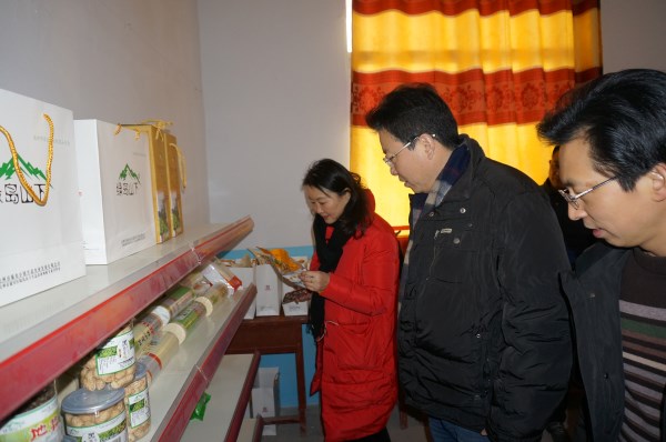 周激流一行查看二龙村土特产展示厅