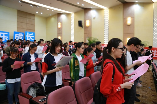 【本网讯】5月9日上午,由学生工作处主办、光电技术学院承办的成都信息工程大学第十三届“5·25”大学生心理健康月启动仪式在学校国际会议厅举行。副校长于世祥,相关职能部门负责人、各学院党总支书记、副书记,学工办主任、副主任,心理辅导员和学生代表等300余人参加了本次活动。