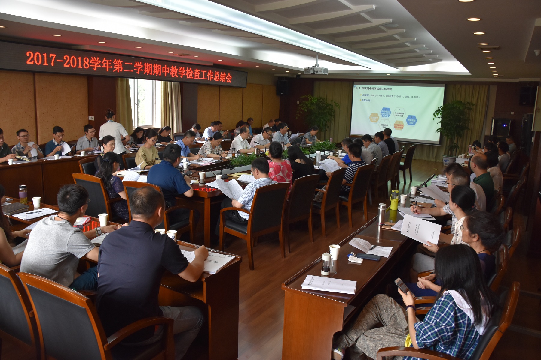 本学期第8周学校下发了《关于开展2017-2018学年第二学期期中教学检查与调研工作的通知》(教务发[2018]9号),于第9-11周组织开展了期中教学检查工作。本次期中教学检查与2018年本科课程试卷专项检查一起开展。5月4日,学校7个教学检查组分别深入全校19个教学单位进行了现场检查。