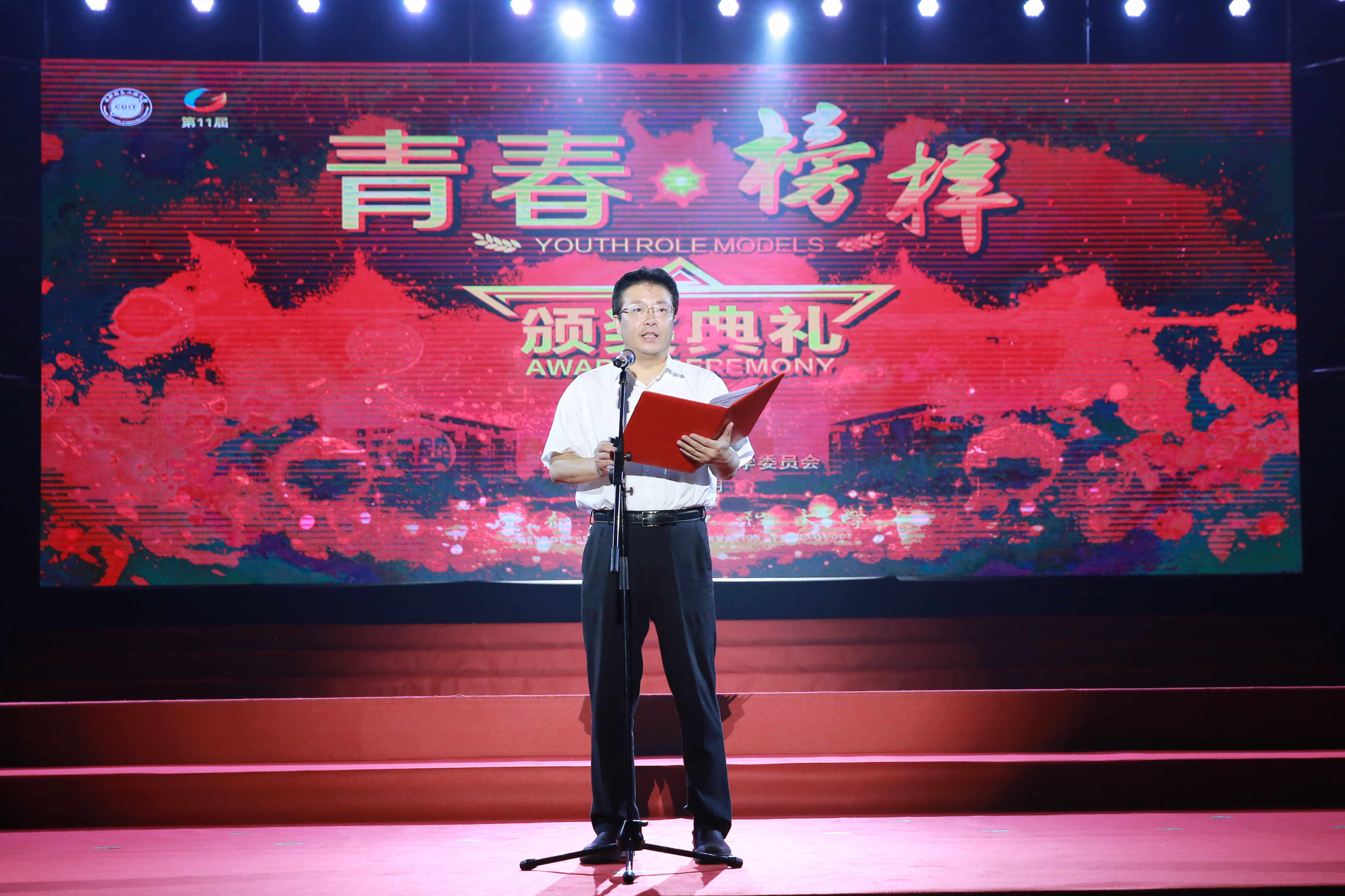 表彰会上,余敏明宣读了学校2017年度“青春榜样”人物的表彰决定。学校党委授予卞成琳等10名同学2017年度“十佳青年学生”荣誉称号,万家硕等10名同学2017年度“十佳青年学生”提名奖称号;授予吕泓柯等10名同学2017年度“十佳班长”荣誉称号,朱钢等12名同学2017年度“十佳班长”提名奖称号;授予陈倩等10名同学2017年度“十佳团支部书记”荣誉称号,魏兰惠等11名同学2017年度“十佳团支部书记”提名奖称号;授予汪洋等10名同学2017年度“学习之星”荣誉称号,吕婷婷等11名同学2017年度“学习之星”提名奖称号;授予李锦涵等10名同学2017年度“自强之星”荣誉称号,王楷等13名同学2017年度“自强之星”提名奖称号;授予贺雪等10名同学2017年度“志愿者之星”荣誉称号,钟玲靖等14名同学2017年度“志愿者之星”提名奖称号;授予王丽都等10个团体(个人)2017年度“双创之星”荣誉称号,授予李柯等4个团体(个人)2017年度“双创之星”提名奖称号;授予资源环境学院2015级环境工程卓越1班等10个班级2017年度“十佳学风班”荣誉称号,授予网络空间安全学院2016级网络工程1班等12个班级2017年度“十佳学风班”提名奖称号。