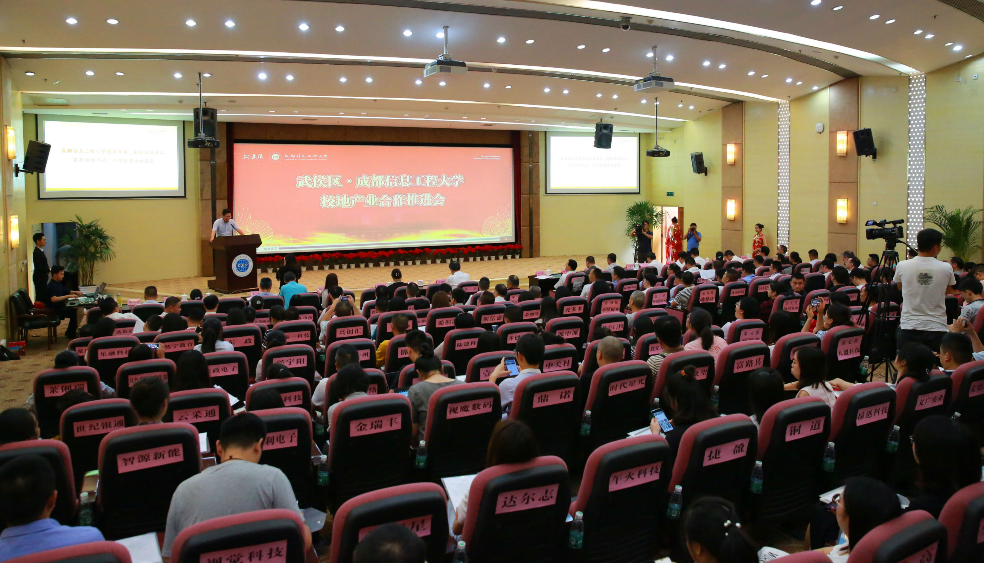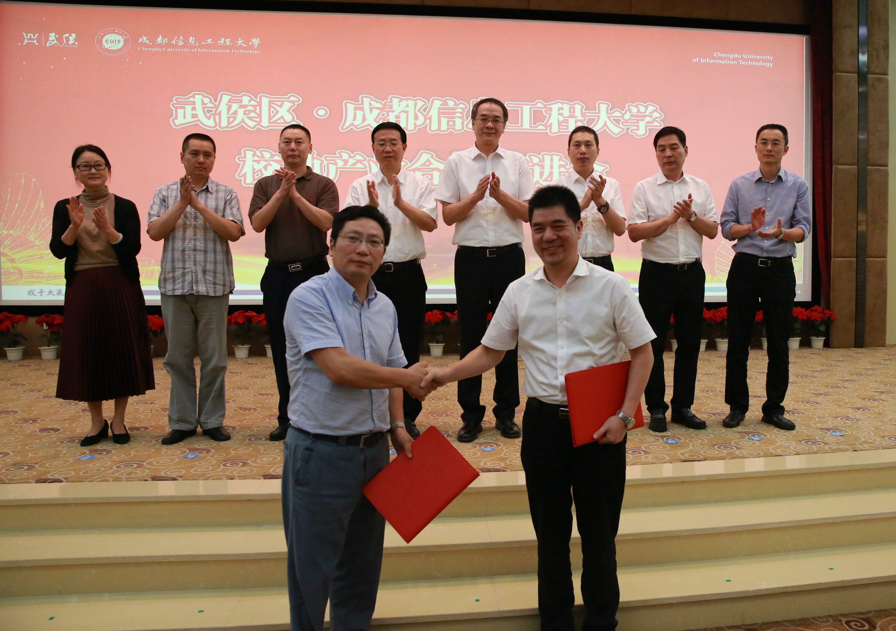 【本网讯】5月30日,成都市武侯区与成都信息工程大学校地产业合作推进会在学校航空港校区国际会议厅举办。成都市人大常委会副主任、武侯区委书记巫敏,成都市科技局副巡视员华成科,成都市经信委工业创意与设计处副处长刘海波,武侯区委常委、统战部部长王瑞平,武侯区委常委、区委办主任、区总工会主席潘永革,武侯区人民政府副区长蒋明,学校校长余敏明、副校长马洪江参加了推进会。会议由马洪江主持。