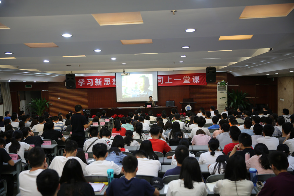 【本网讯】6月15日上午,根据教育部统一部署和教育厅集中安排,“学习新思想千万师生同上一堂课活动”讲师团第三组巡回授课在我校举行。成都理工大学校长龚灏教授、西南财经大学马克思主义学院院长唐晓勇教授和成都信息工程大学辅导员薛蕾担任讲师团第三组成员,分别为我校教职工和学生授课。学校中层以上领导干部、各级人大代表、政协委员,民主党派主要负责人,马克思主义学院教师代表,辅导员和学生代表到场聆听了授课。授课活动由副校长肖月强主持。